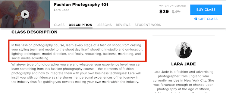 In CreativeLive we found a course with a fashion and advertising photographer Lara Jade. Price for this course - $29.