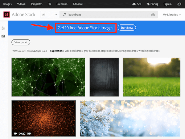 - Adobe stock. They offer 10 images for free.