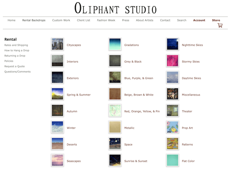 - Oliphant Studio. You can rent backgrounds from Oliphant Studio and see how many of them are available: